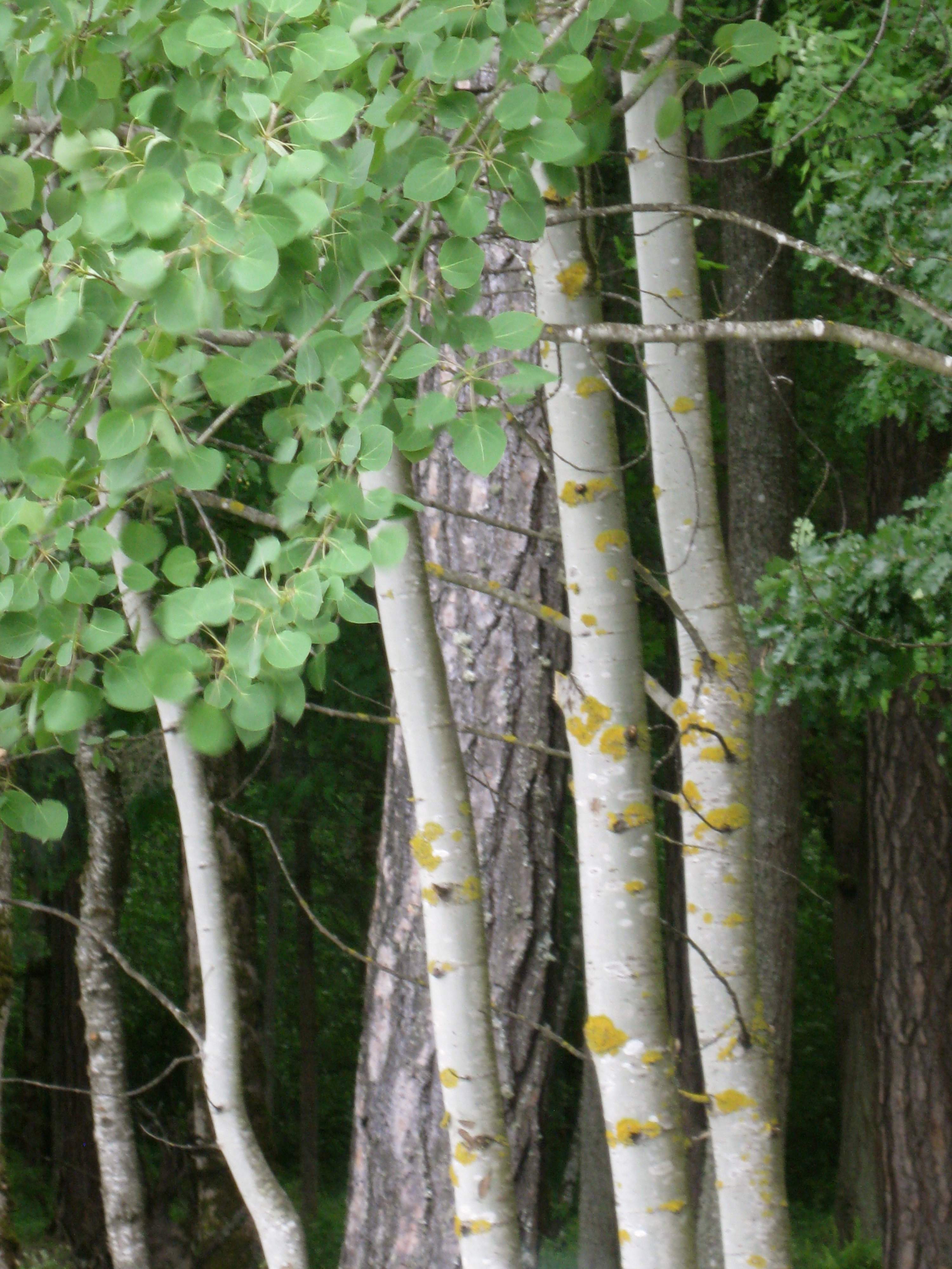 Lil spots of yellow on the tree trunks!