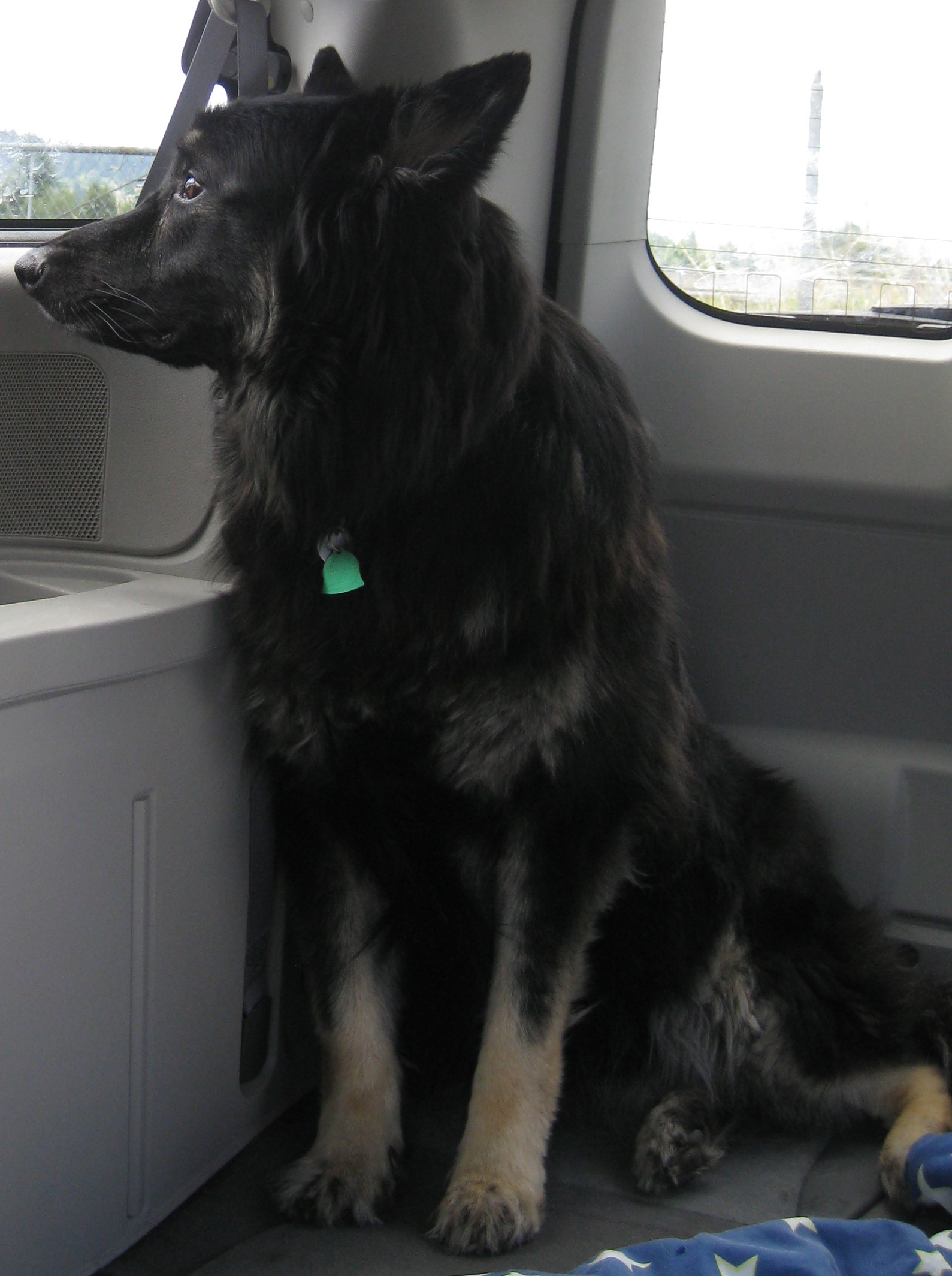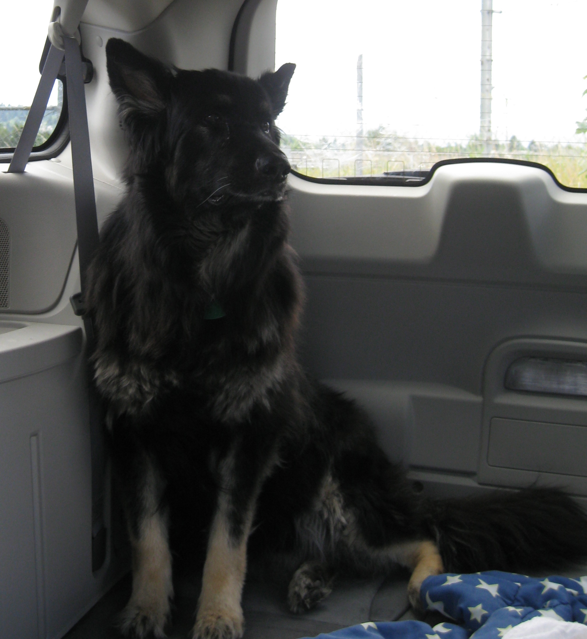This is Bear being camera shy in our van! He adores going bye bye with mama! We were picking up his papa from work yesterday.