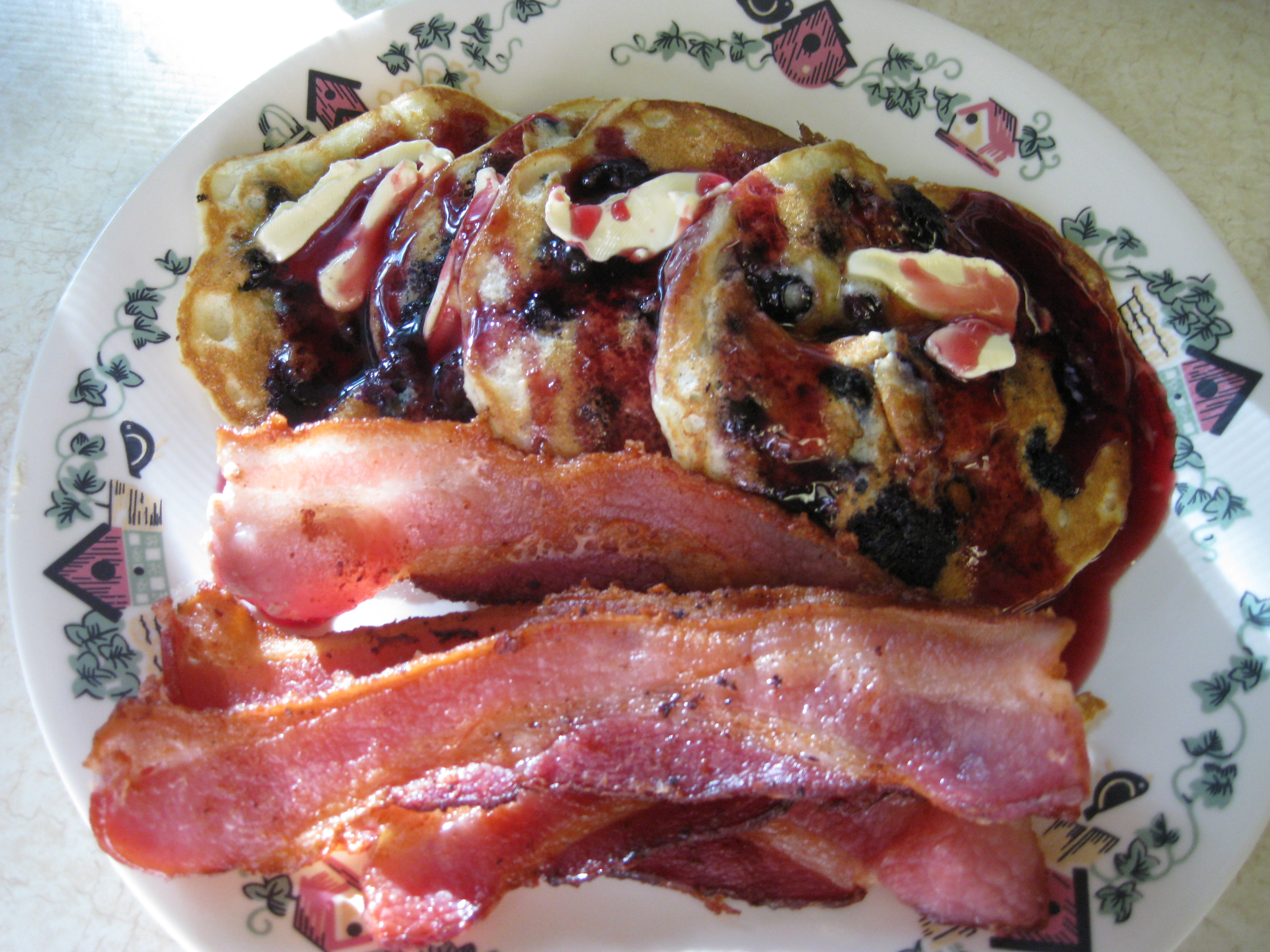 First of all, I crocheted all my bears ears! Next I will make legs and arms, then bodies and heads and then Bear surgery for assembly! IMG_2557IMG_2555On the weekends I like to make breakfast for my husband and me! I used my blog friend Jess’s home made pancake recipe, I had blueberries so I added those and we topped it with Blackberry syrup! Oh my gosh! Delicious!