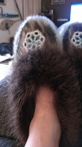 It was cool enough today for me to dig out my Eskimo slippers! These are my special slippers my husband got for me. They are authentic slippers from Alaska and are made from seal and beaver fur. I am Half Eskimo and things from my heritage are very special to me!!