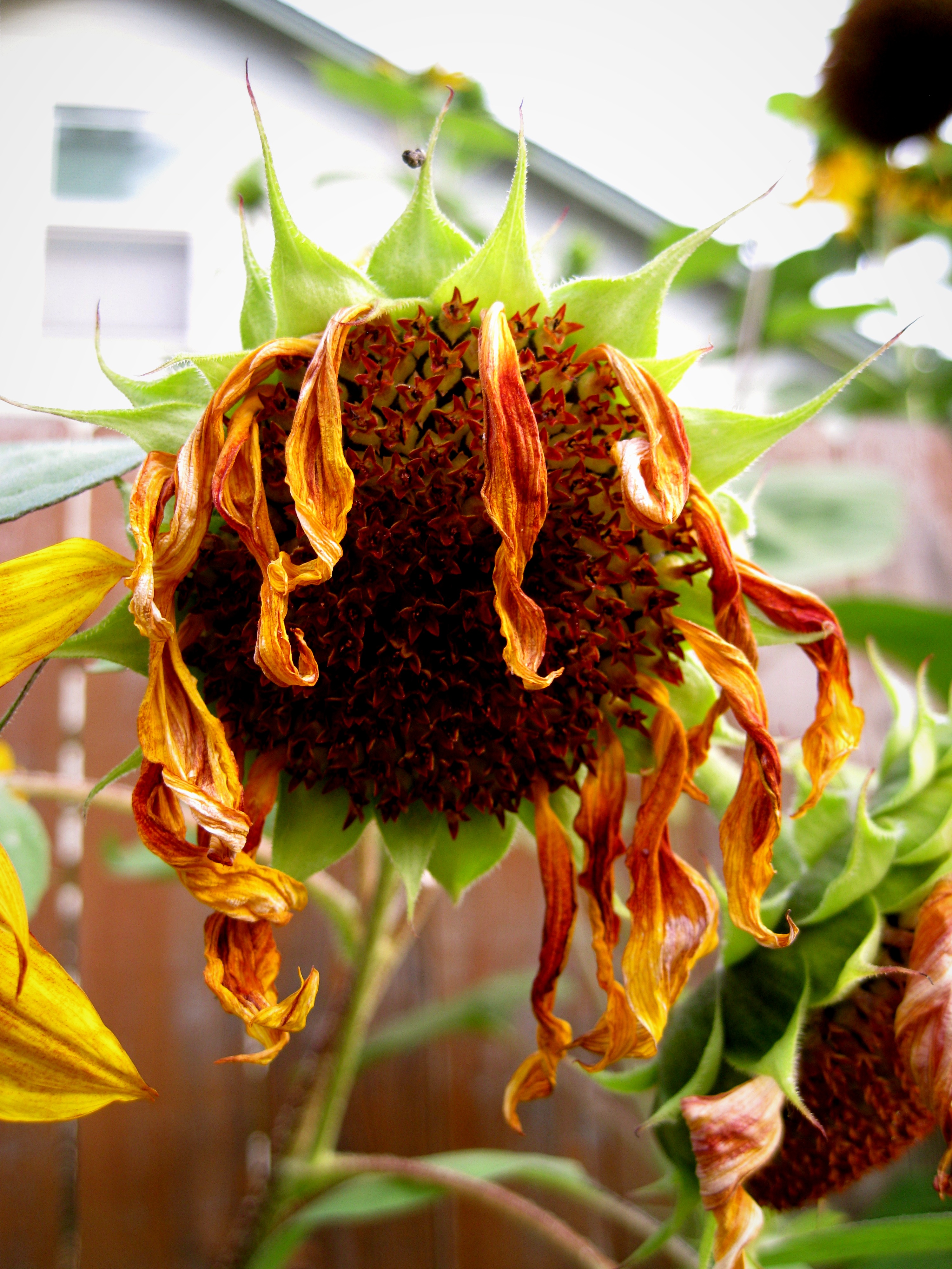 This is how I feel!!! Alllll drooooopy! tee hee! The petals look sad or maybe it is sunflower hair!!!! She still looks kewl!!!!! hehehehehe