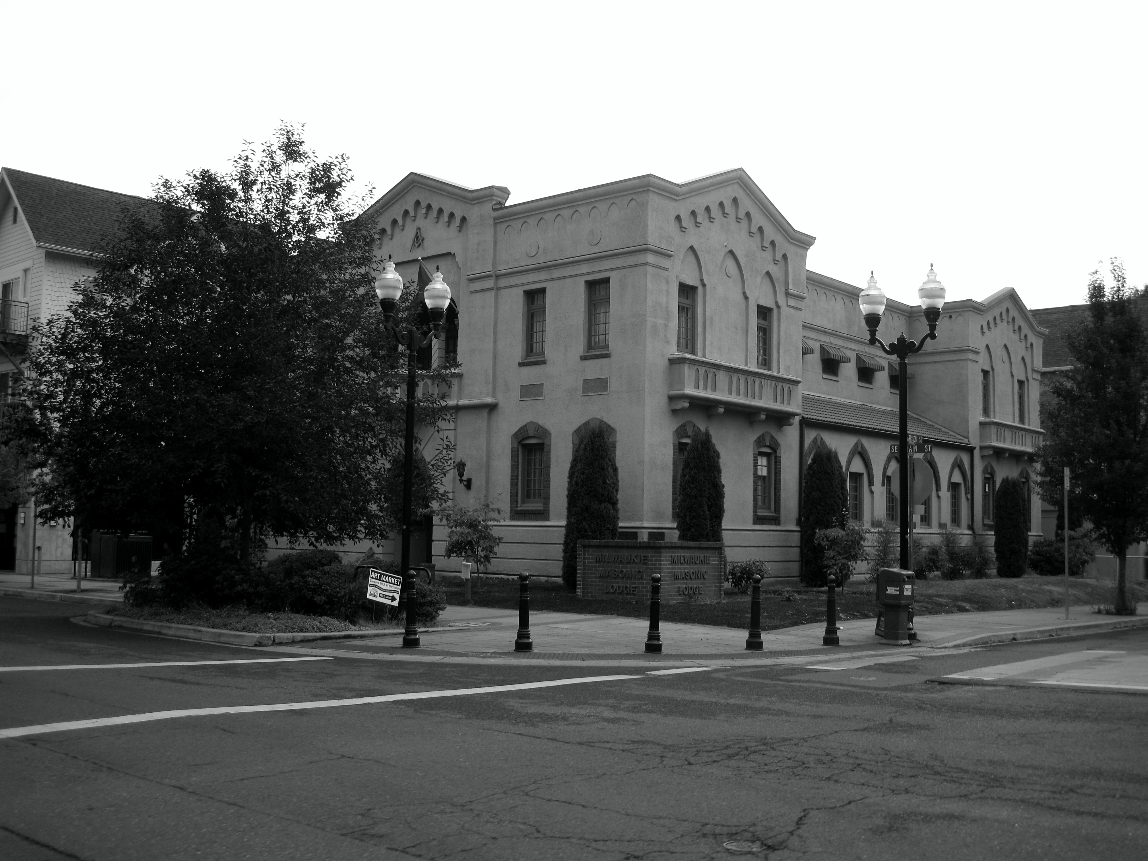 MasonicLodge1I am a big avid fan of black and white photography!!! MasonicLodge2Here is the beautiful building in color. It is the Masonic Lodge in downtown Milwaukie! I love good architecture and interesting buildings.