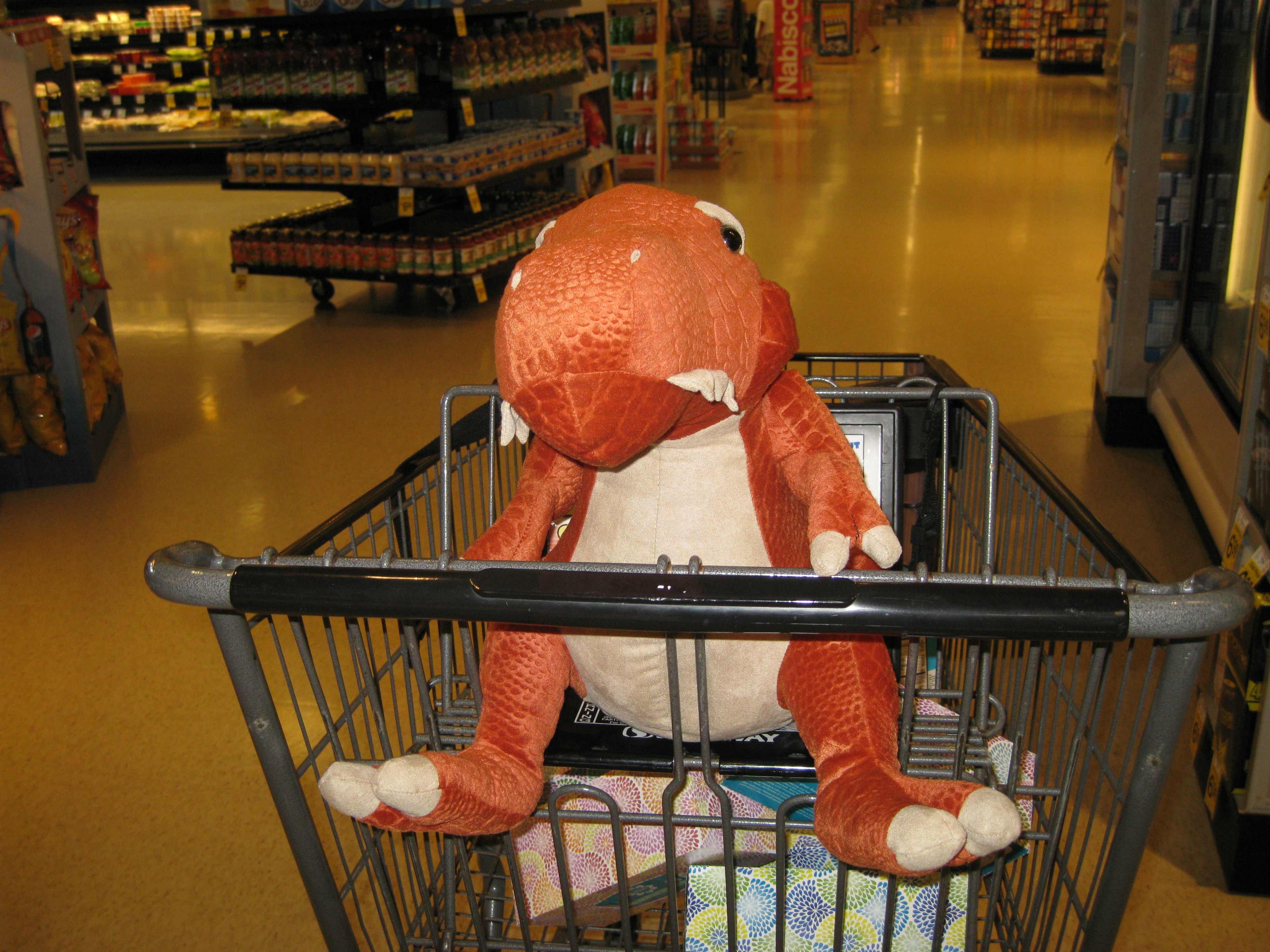 Took Hubby’s mom shopping on our visit and Dino jumped into the cart for a ride!