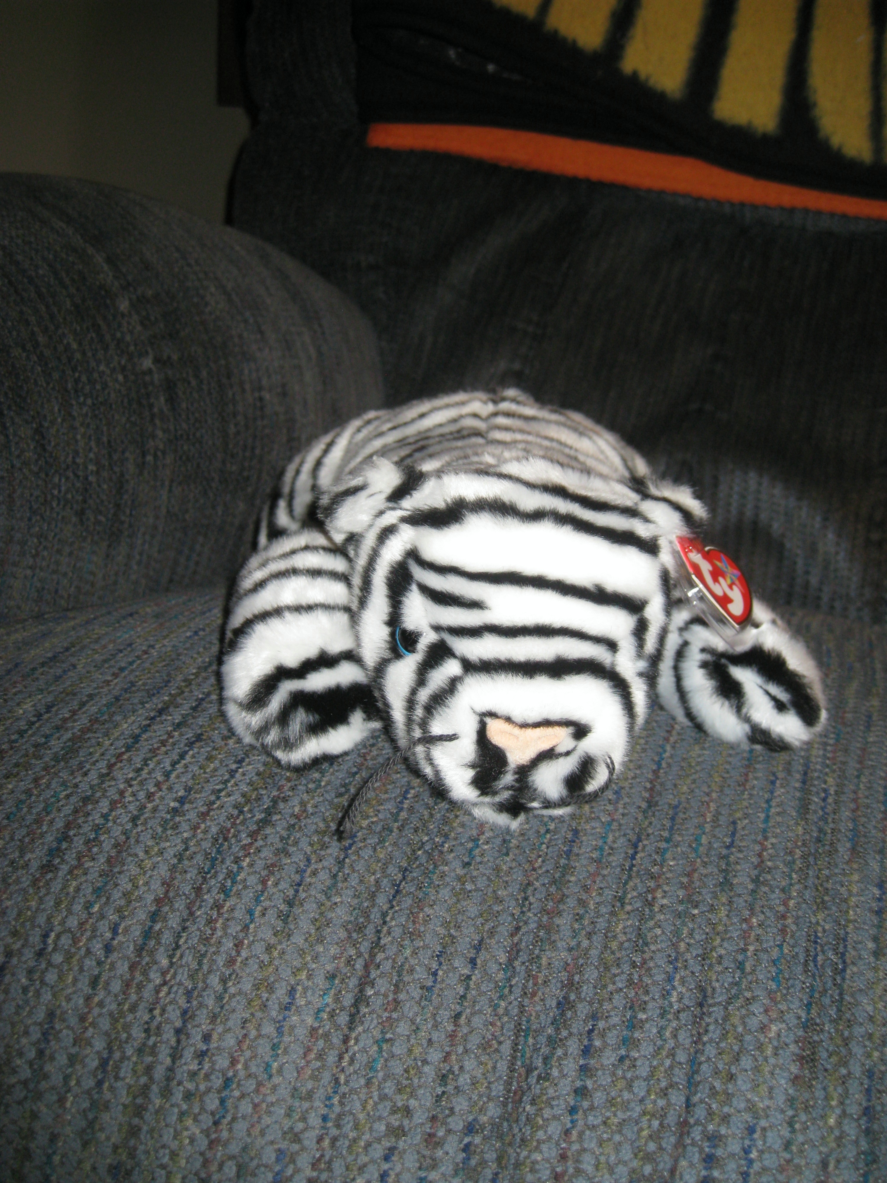 Being a train operator we are locked in our cabs and don’t interact with people. Since I do the same run everyday and see the same people, I make eye contact as I am pulling into the platforms and smile and wave at people. I have gotten to know my regular riders that way! I always have a stuffed animal in my window too to make them smile! I get to talk to some of my passengers at the end of the line. This morning one of my riders came up to my side window before boarding my train and he gave me this Beanie Buddy White Tiger. He said it is an original buddy! How kewl is that!!!!!! So here I was crying as I was going down the tracks because I have touched their lives and they in turn touch mine with this special gift!