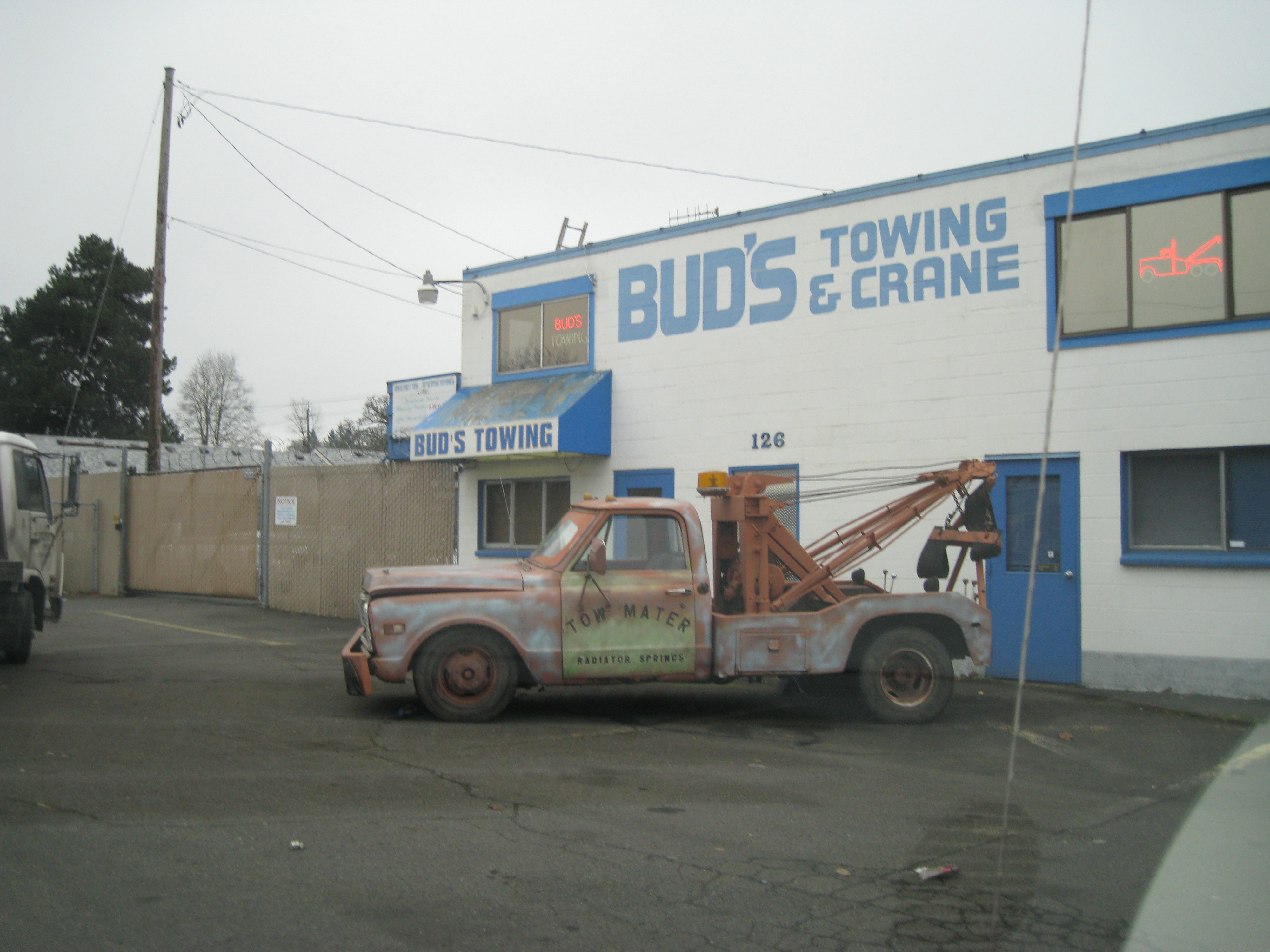 Ok date night with my husband consisted of being towed by “Tow Mater” to Les Schwab as we ended up with a flat tire! Grrrrrrr! Both the tow company and Les Schwab were awesome on our rescue! We were lucky and happened to be right here in front of the tow company! Whew!!!! Oh and the kicker was we had Boo Bear with us and he is very protective of his property so Les Schwab employees did not even want to open our car door! tee hee! They managed to successfully get the work done without tangling with Bear! Whew!!!!