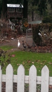 Always enjoying neighborhood chickens or geese and white picket fences on an afternoon walk with my fur kid Bear!