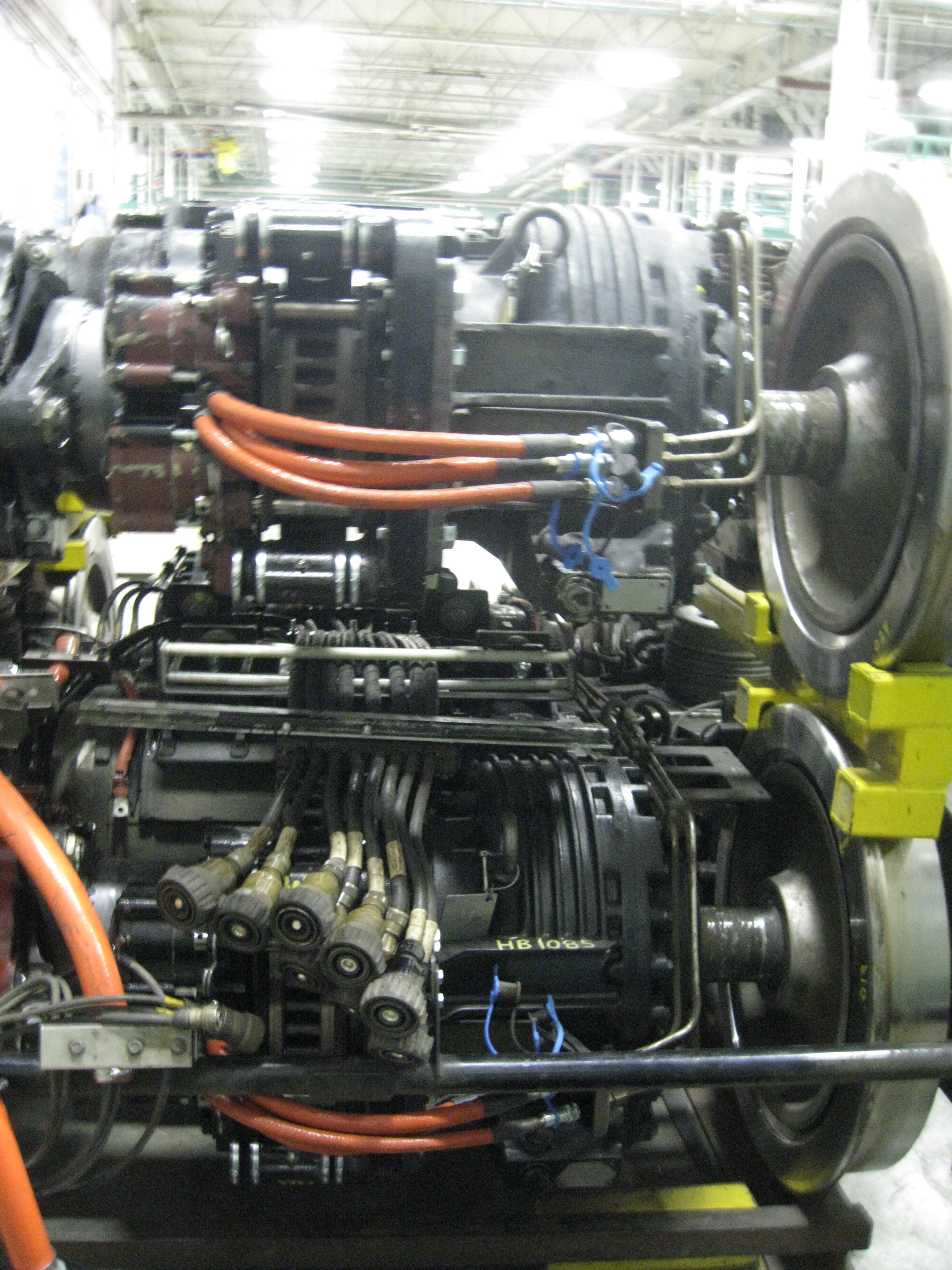 These are called trucks, I enjoy looking at all the train parts in the shop. It is so amazing to me how much there is and that a mechanic knows how all of it works and where it goes!