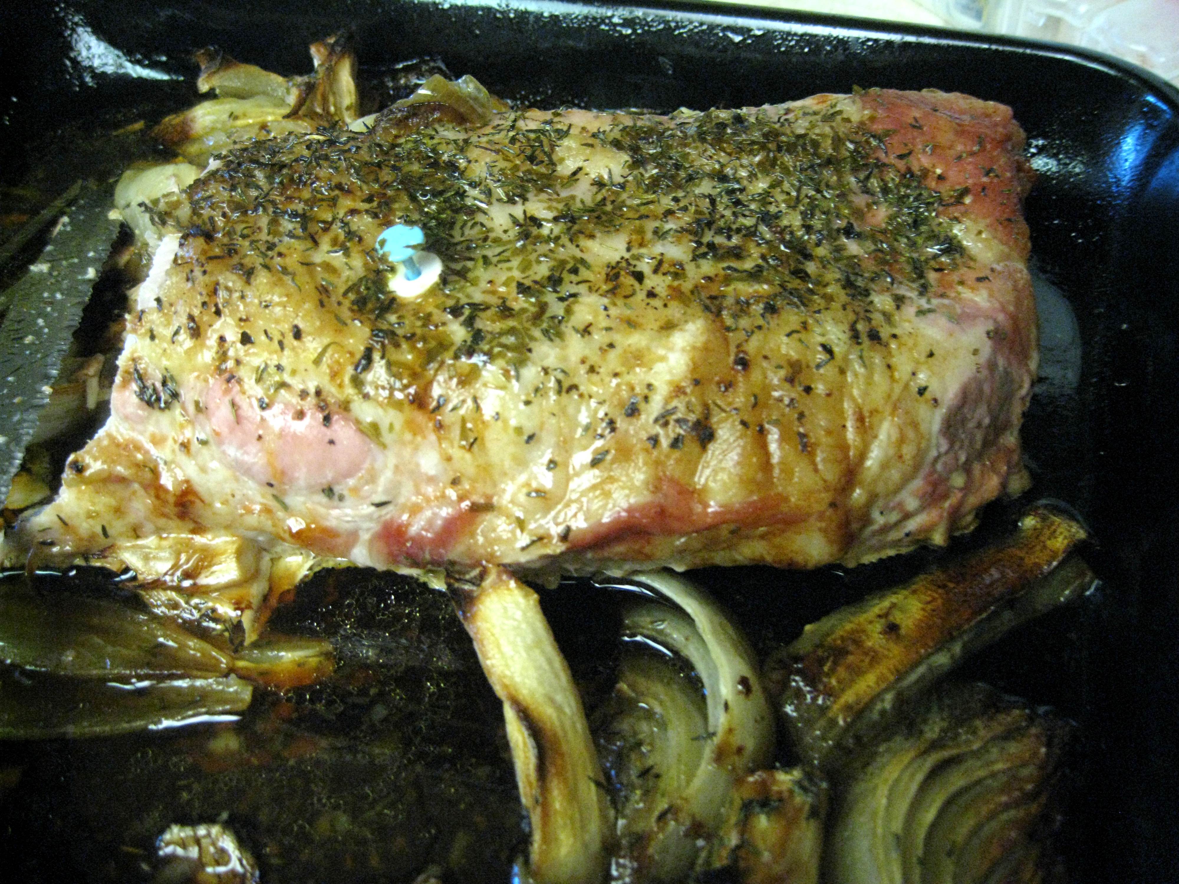 This is what I made for our dinner and it was soooo good! I bought a Pork Half Boneless Loin Roast, seasoned it with salt, little bit of lemon pepper, Tarragon, Thyme, Basil.