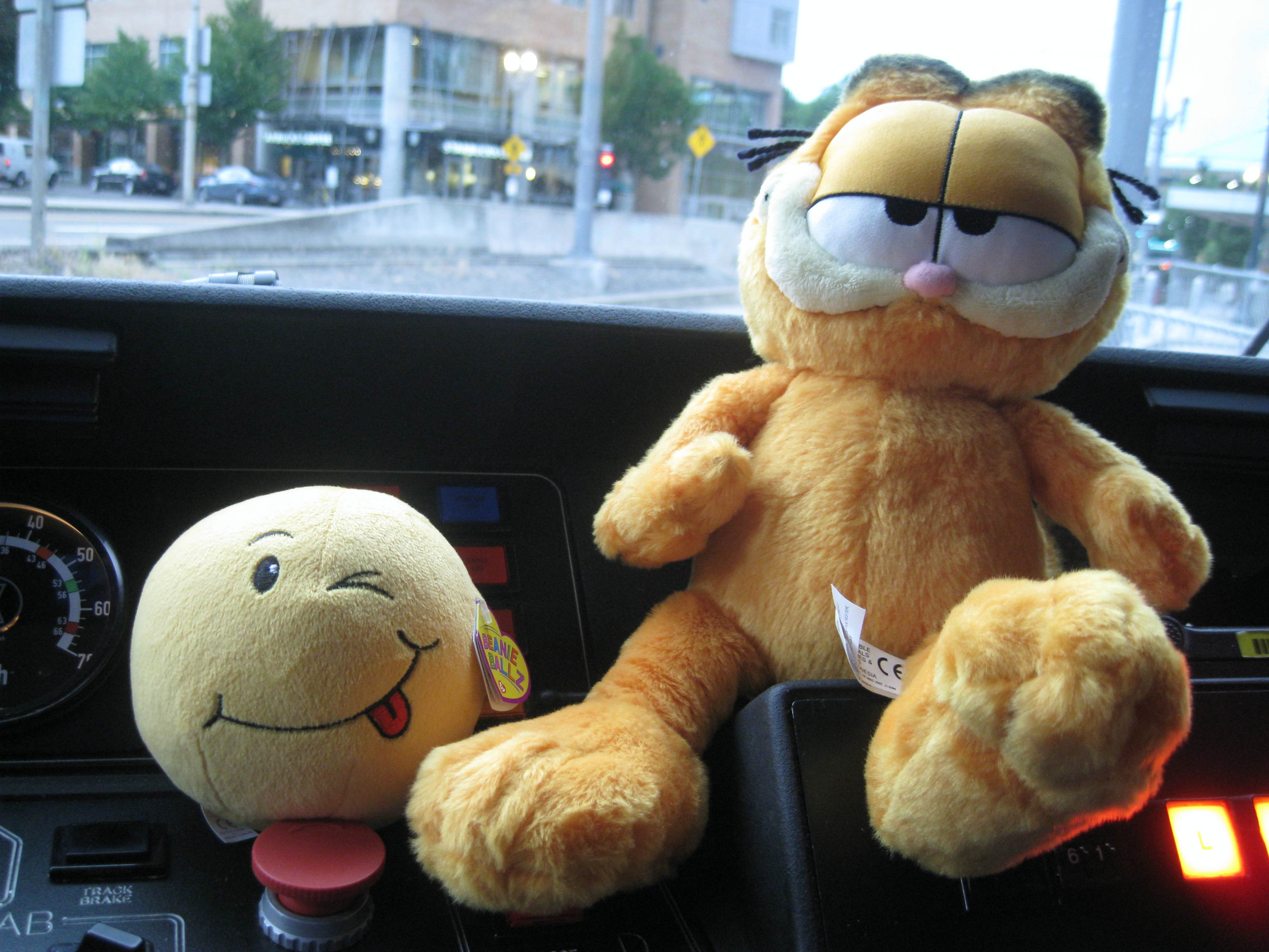 Here Garfield has the ball! Hmmm, will he kick it? Muuuuuhwah! Or will he just pat it on the head? Depends on if Garfield had his lasagna for lunch! tee hee