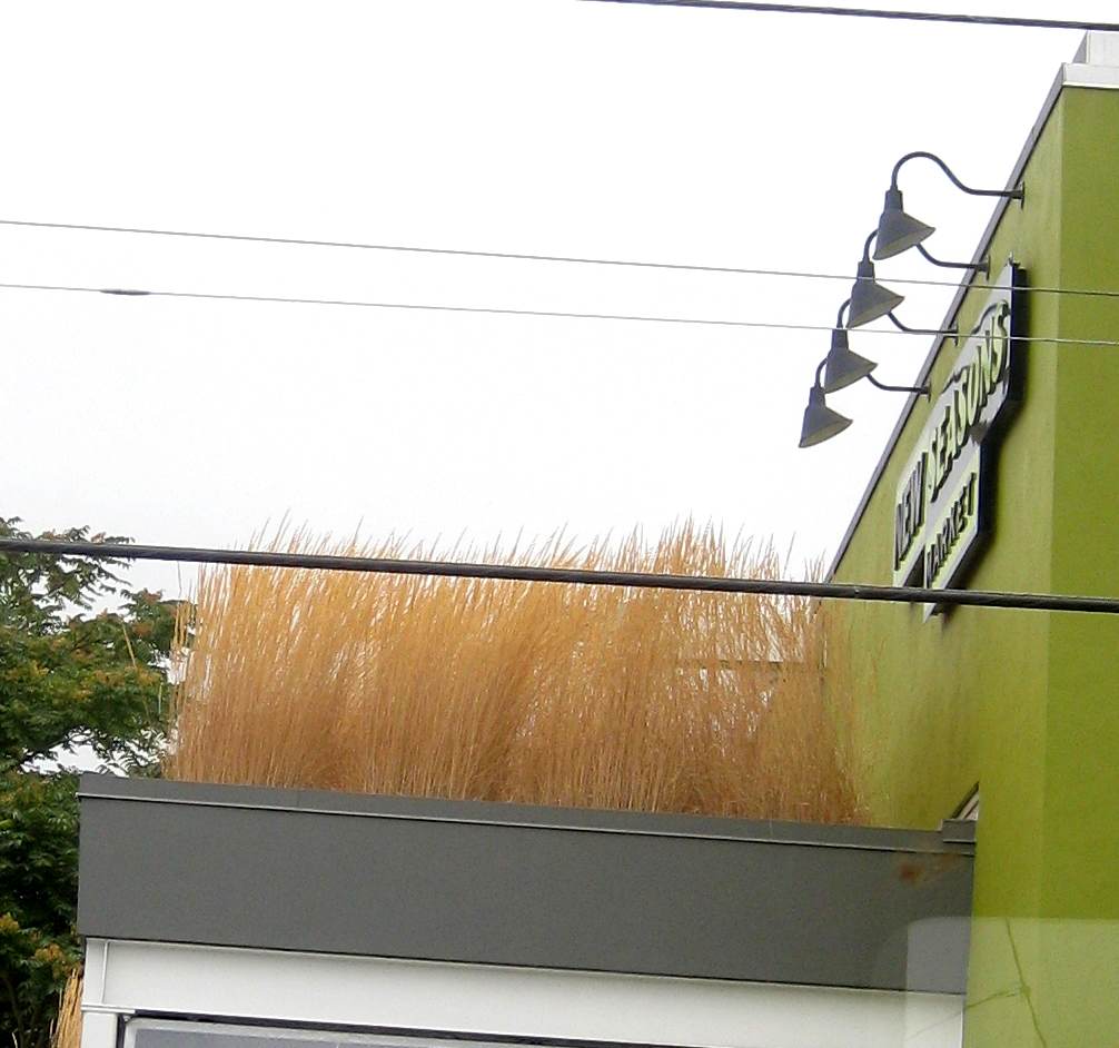 Grasses on the roof makes pretty natural art to this store!