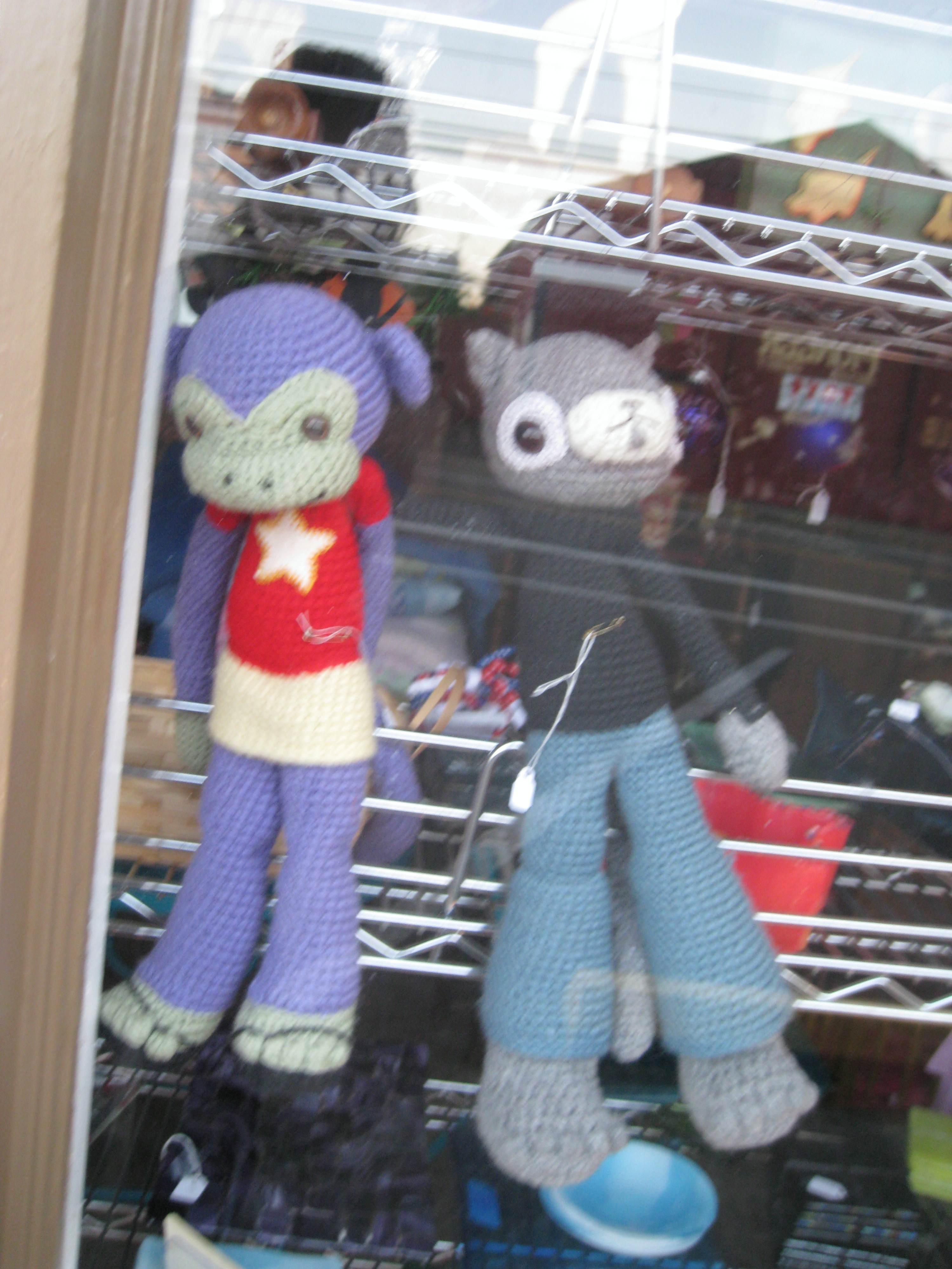 Bear and I walked by this cute shop and saw these crocheted items, I have these patterns! Very kewl!