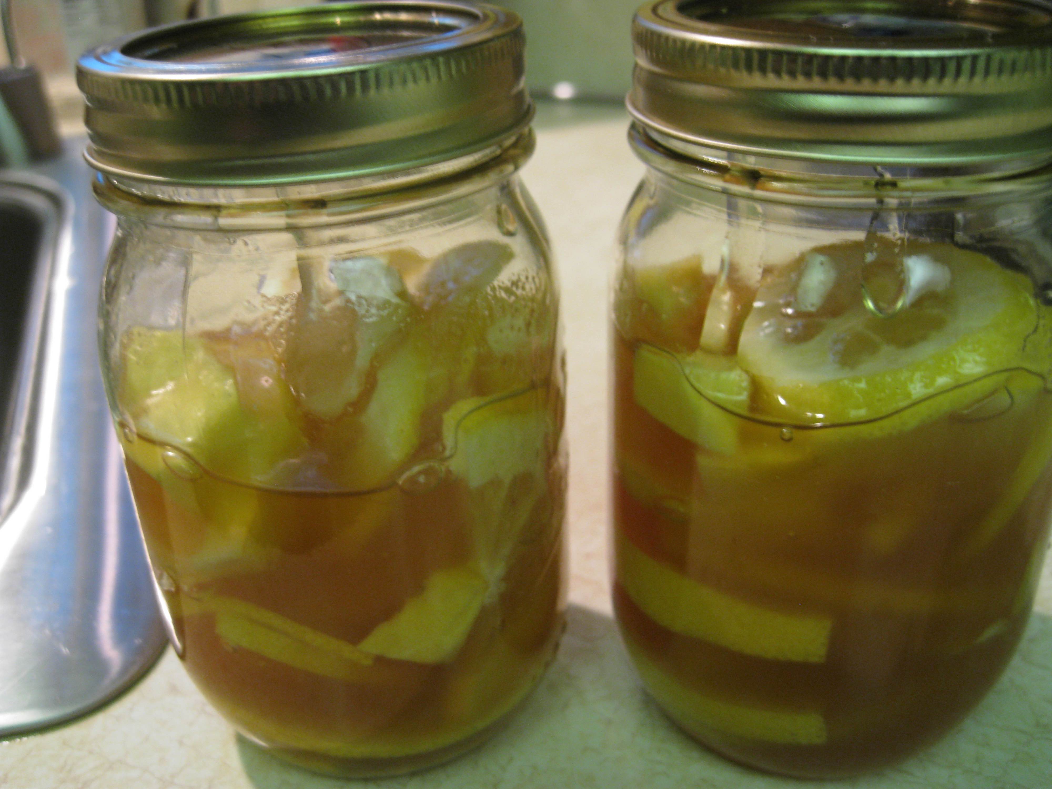 In 12-16 oz jar combine lemon slices and sliced ginger. Pour honey (organic is best) over it slowly. Let the honey sink down around the lemon and ginger. Close jar & put in fridge, it will form into a jelly. To serve, spoon jelly into mug & pour boiling water over it.