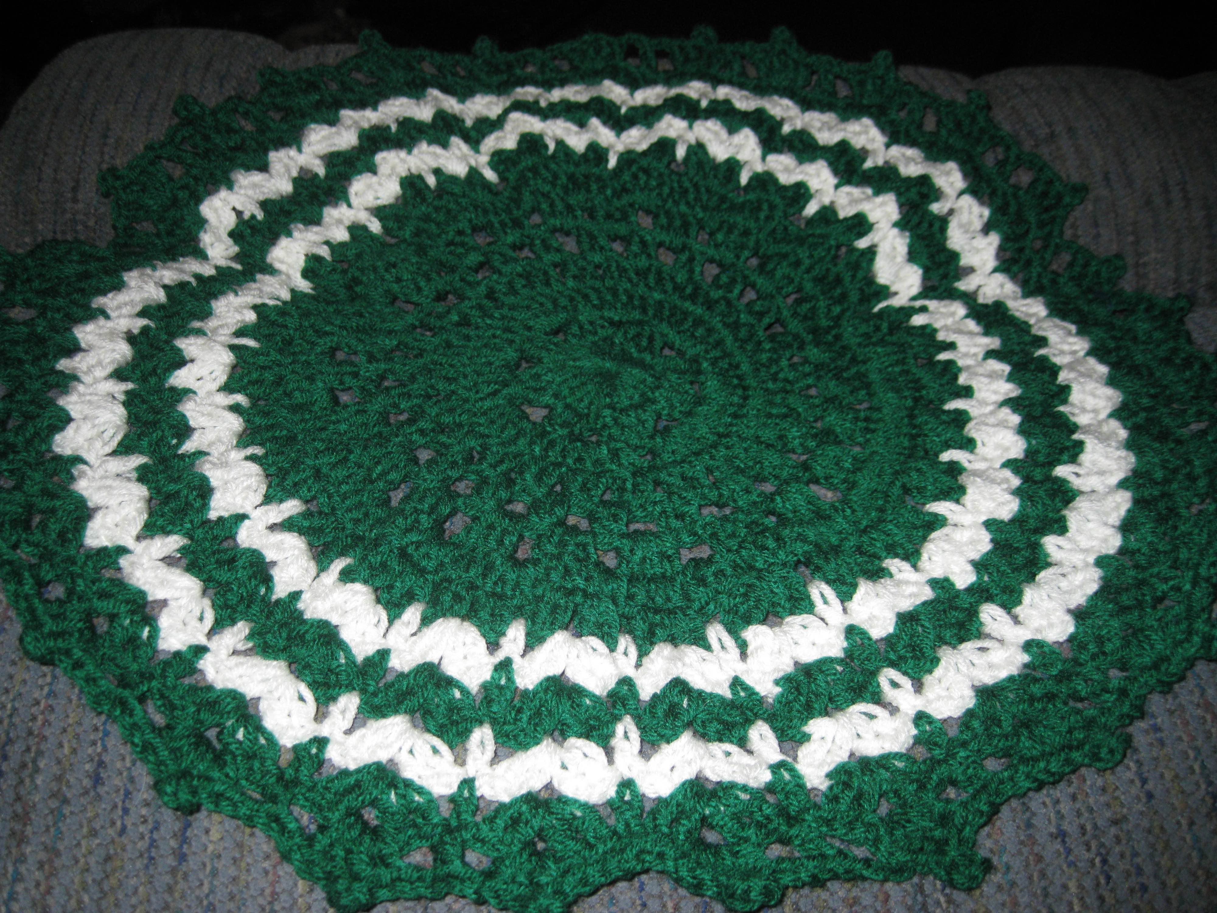 I am happy because my favorite team the Green Bay Packers won their game today! AWESOME!!!!!!! GreenDoilyI completed another doily project! As you can tell I  am making lots of holiday ones this year! They are a quick and very fun project!