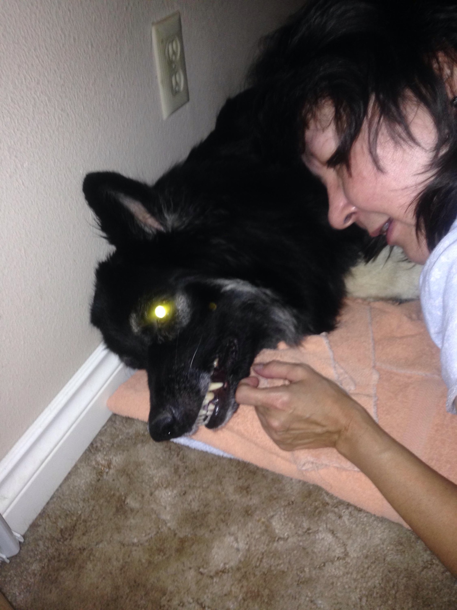 Hubby took this pic of me trying to get Bear to give me a kiss! Sometimes he isn’t in the mood and gets snarky! He bares his teeth and growls but he never bites! All growly Bear!