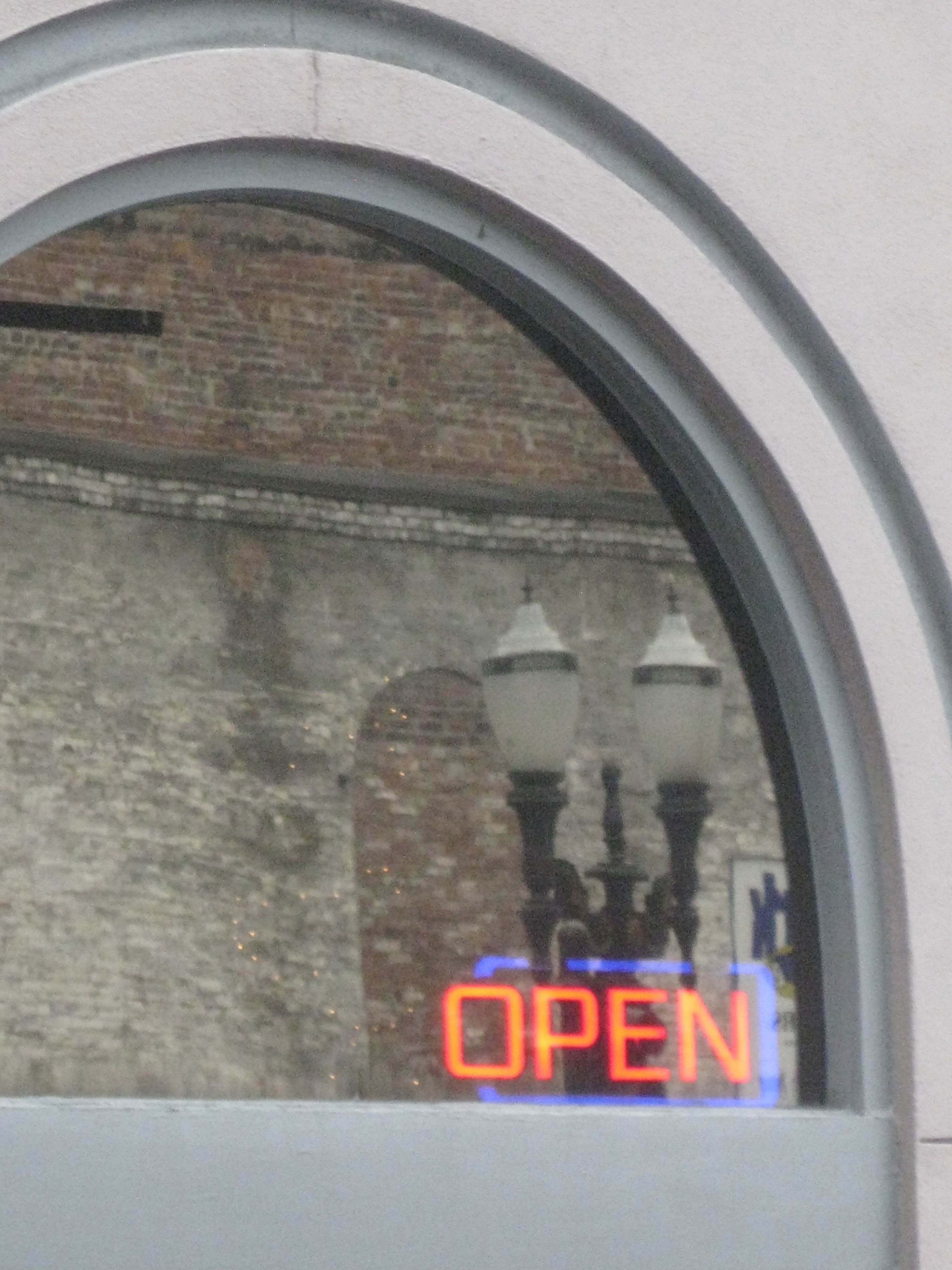 Just a cool window with a reflection of the street lamps!
