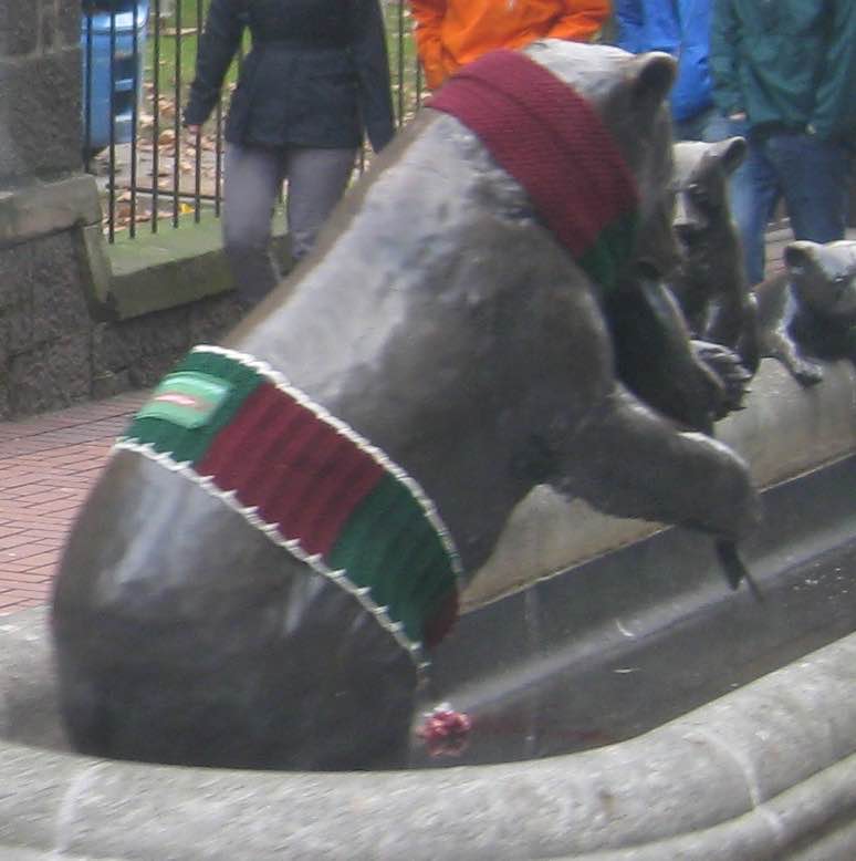 Yarn bomb bear downtown! Cute