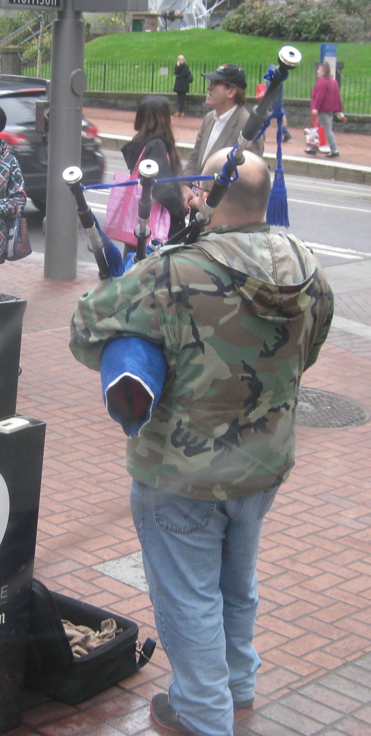 Man playing bagpipes downtown! Pretty cool!