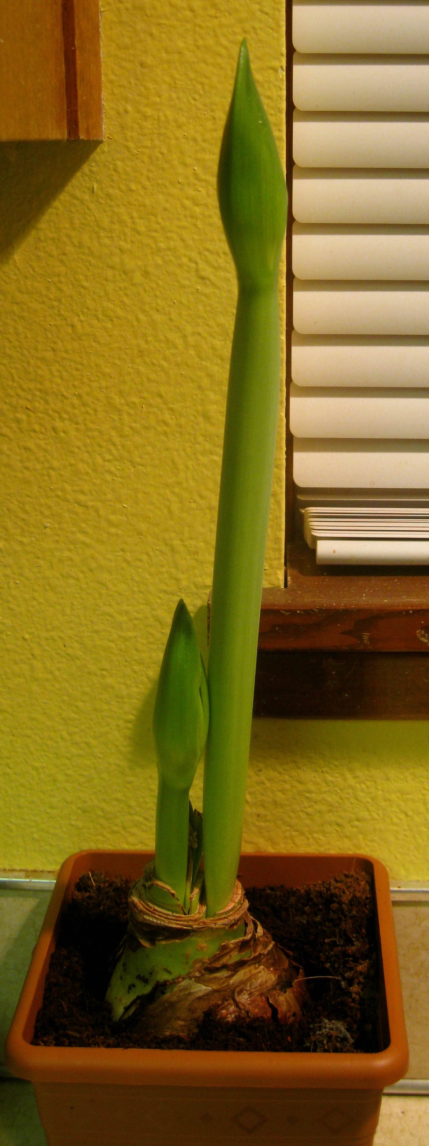 Two Amaryllis buds growing! Our good friend and neighbor gave this to us as a gift! Looking awesome!