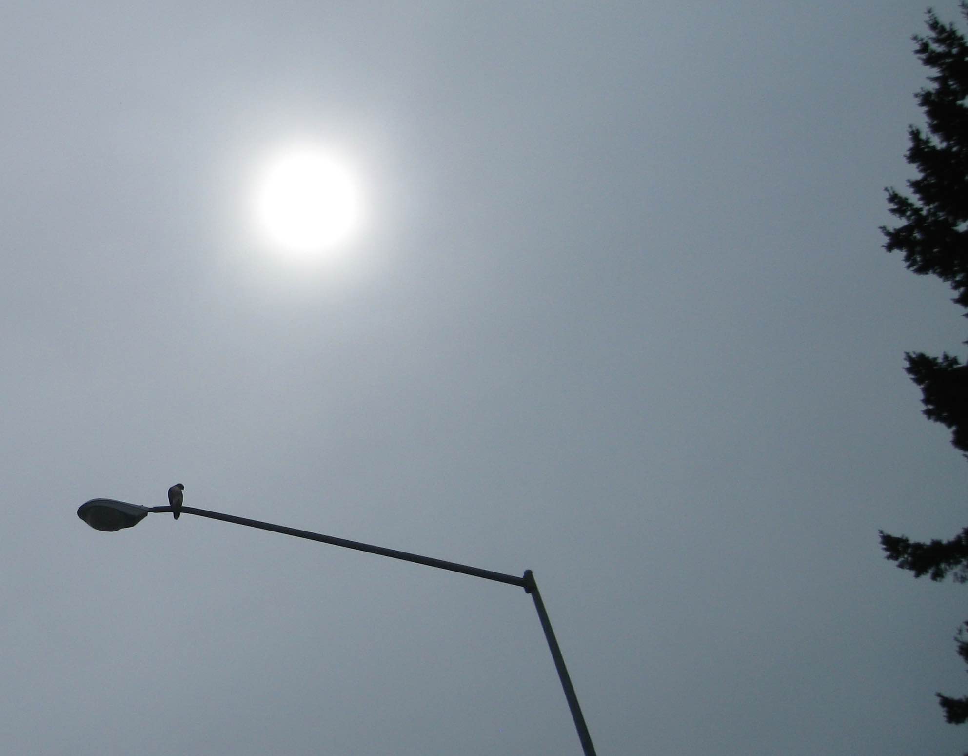 Hawk baby sitting on the light waiting for his dinner to walk by!