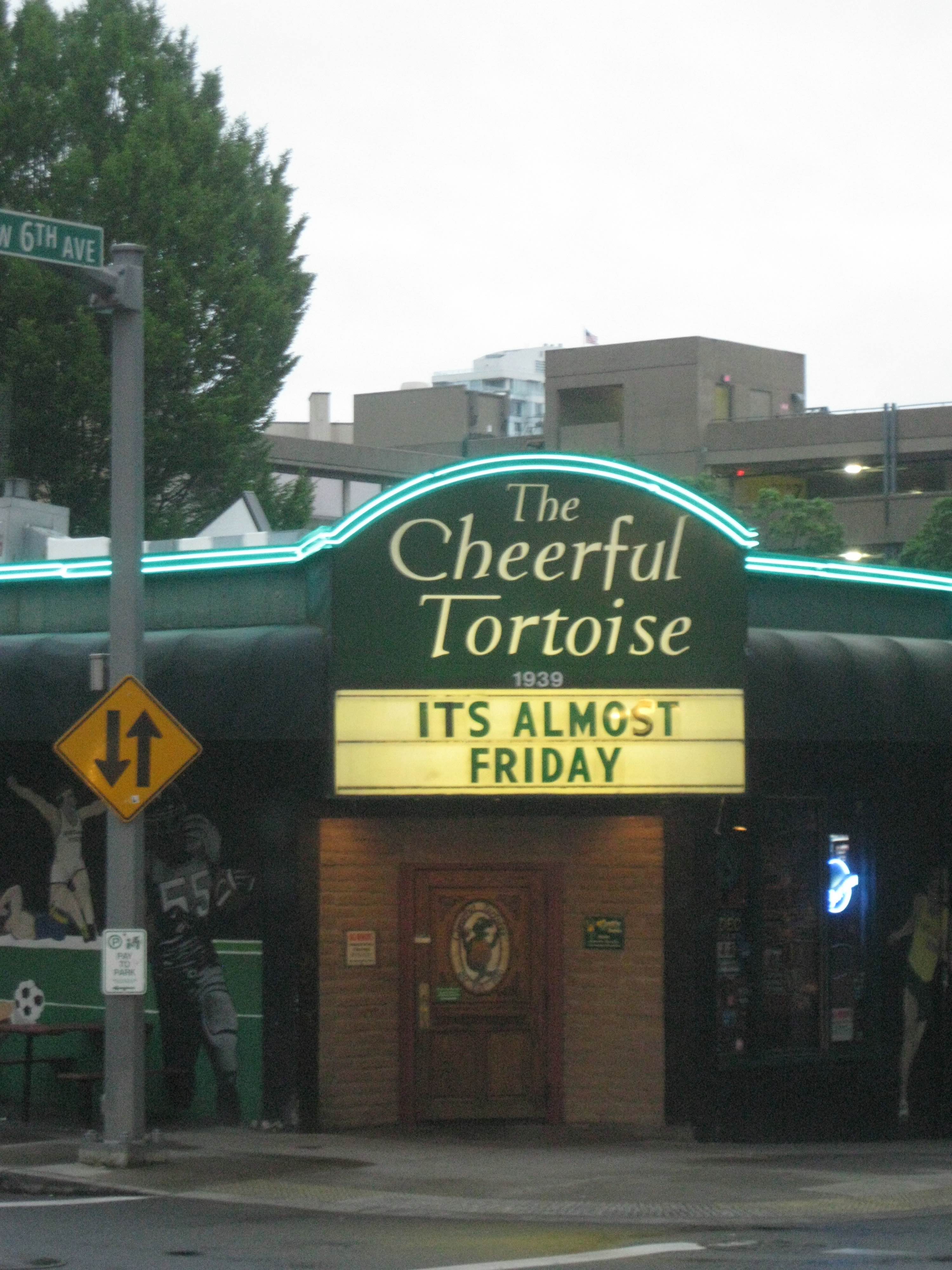 Ok someone in the Cheerful Tortoise has drank too much beer when they posted this on their Marquis because today is only Monday, a few days away from Friday! Geesh! tee hee
