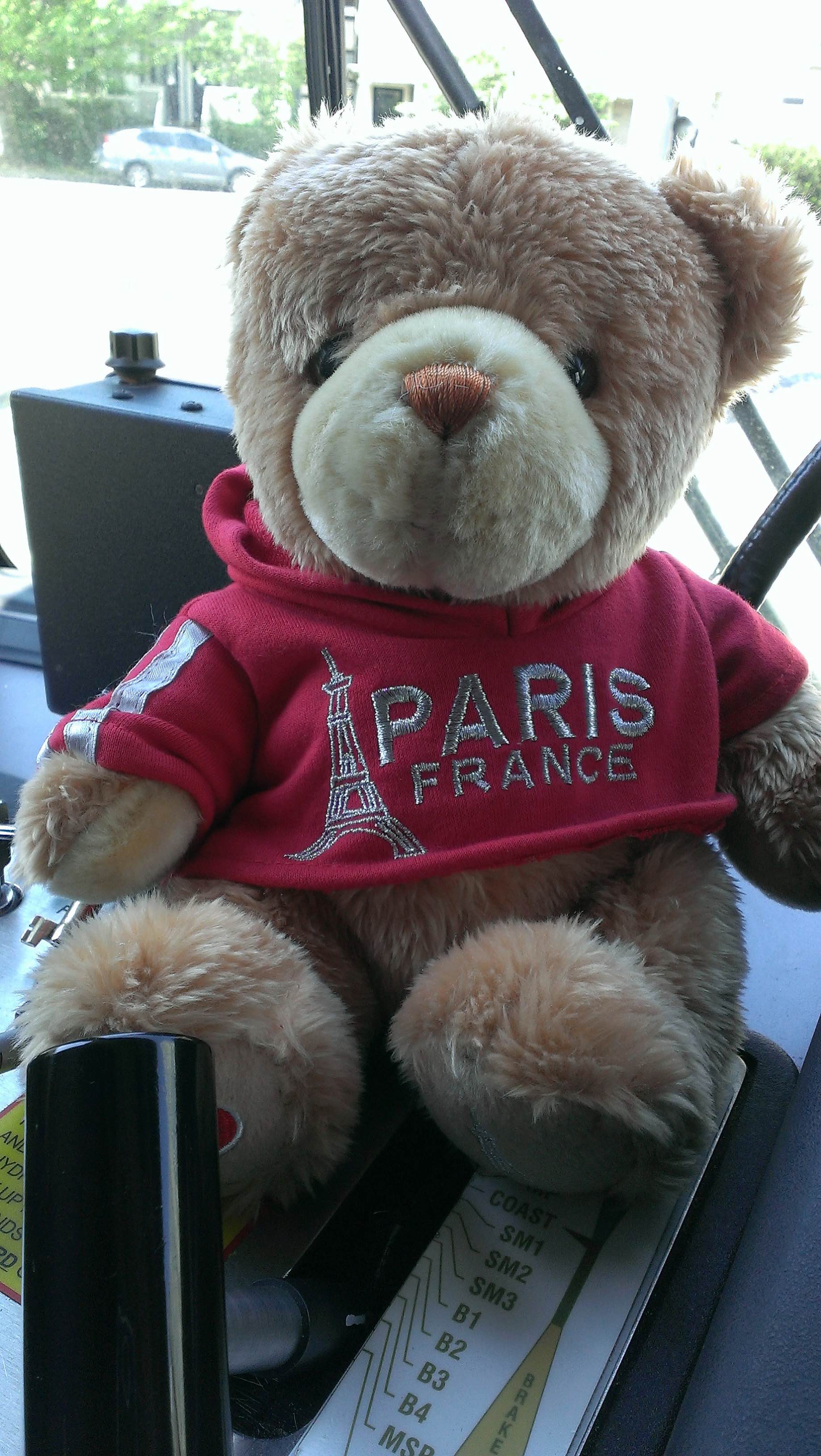 My bear “Paris” makes an adorable train pet!