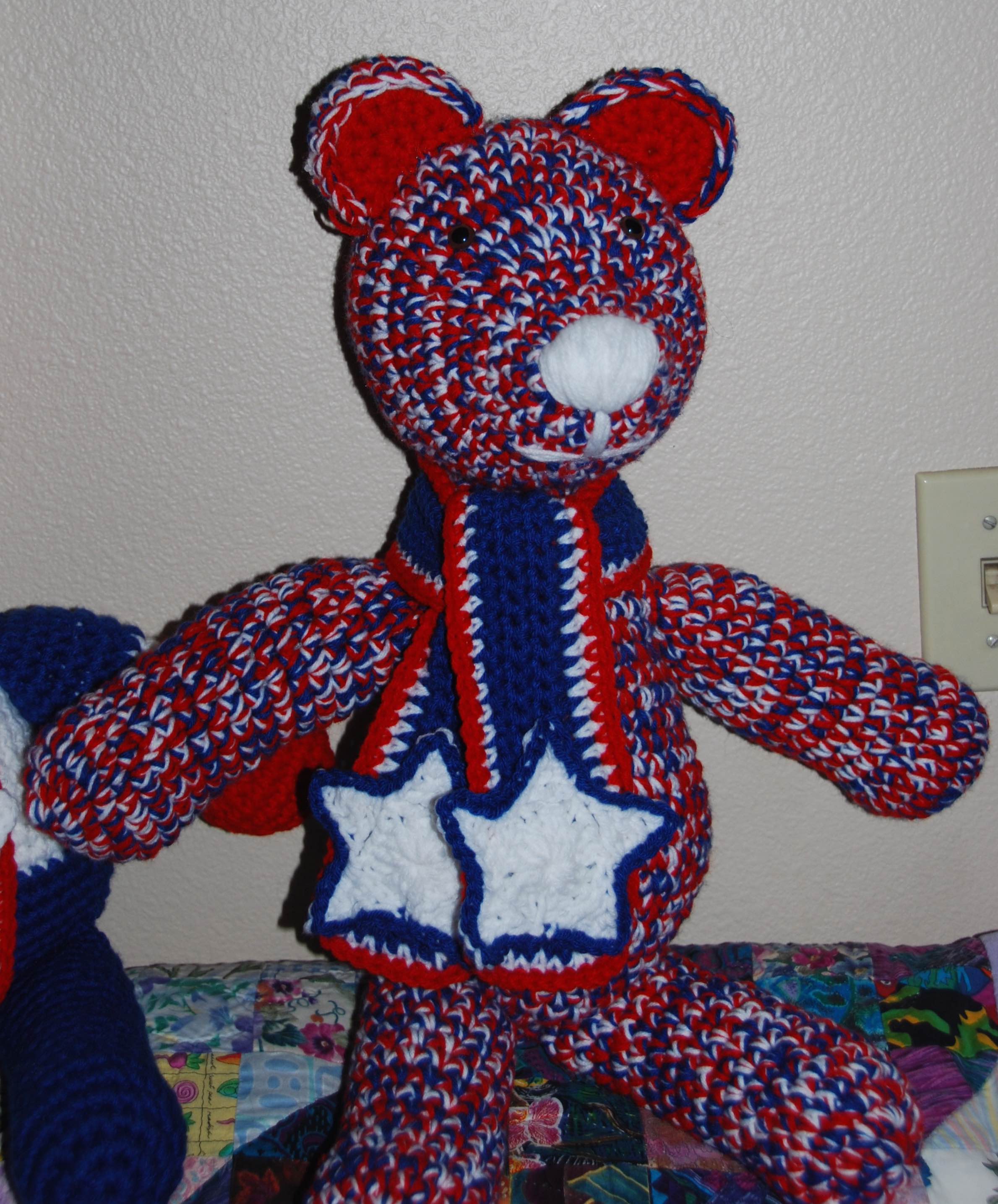 I finished the teddy bears scarf this morning! Now he looks complete and adorable!