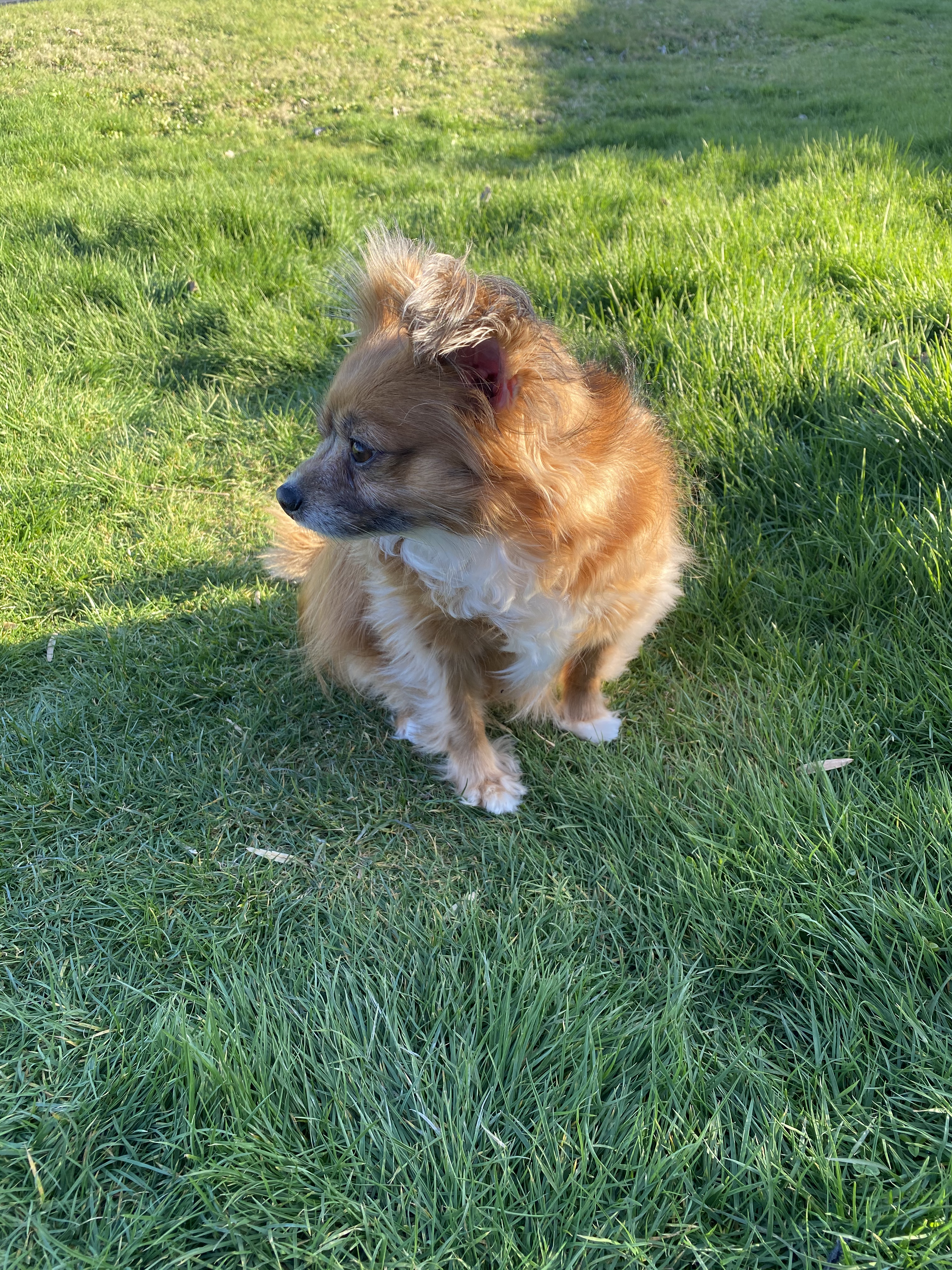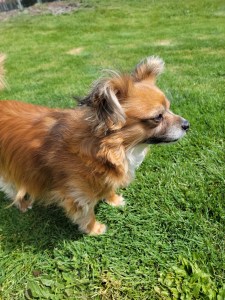 She loves playing in her big yard! She likes to bark once in a while when she sees something out of the ordinary on the street! She is smart and has me wrapped around her paw! That is ok as she deserves the best in life!