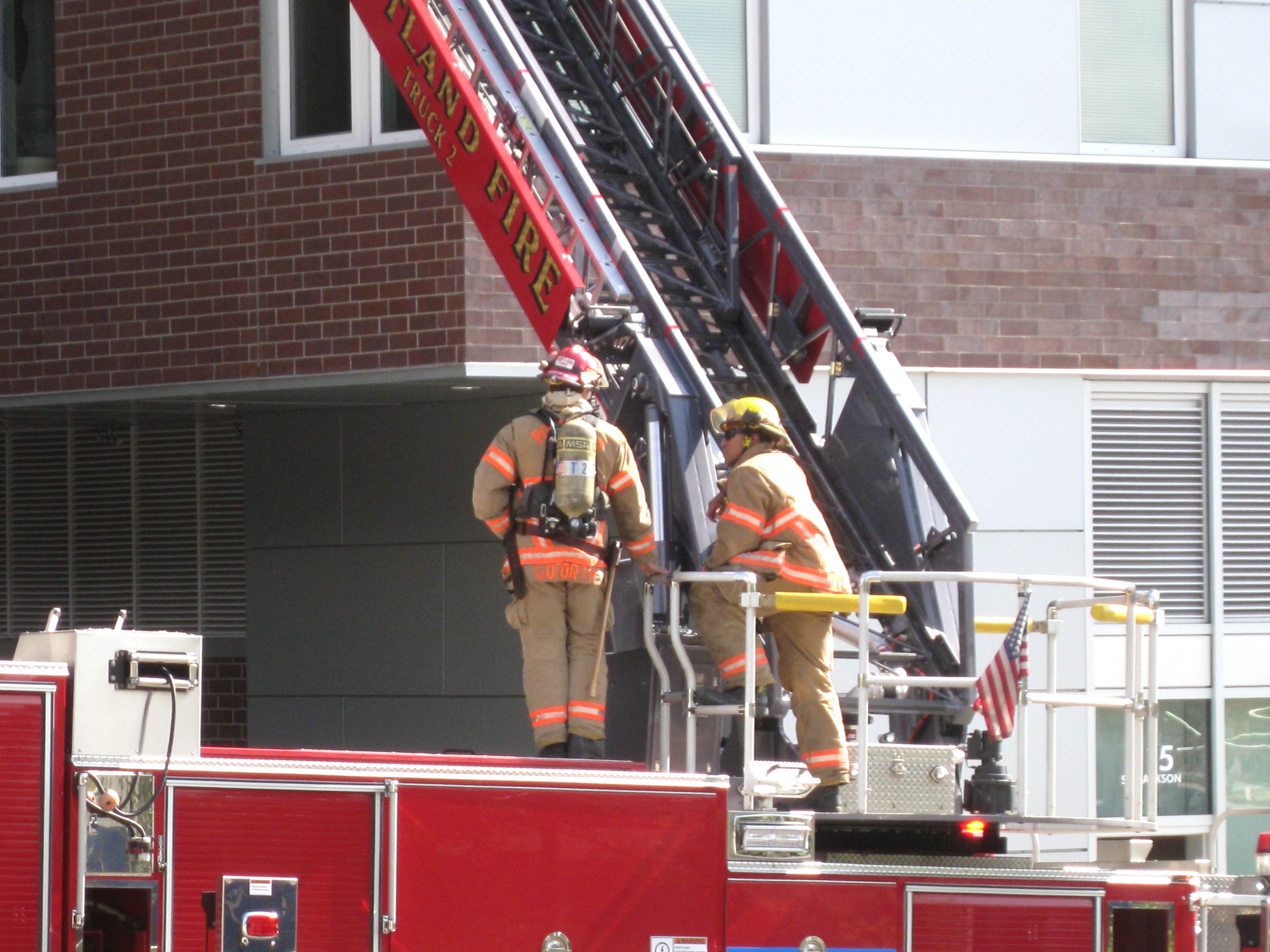 I think the fire fighters were doing some training today at the college dorms! Pretty cool (I mean Hot) to watch them work! Ok, ok I will behave now! NOT!!!!!!! Muuuuuhwah!